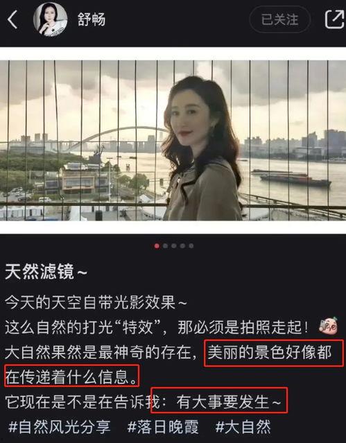 那么,这个截屏视频里到底有什么内容呢?据网友透露,视频中舒畅分享了自己的生活点滴,包括日常穿搭、美食分享、旅行经历等。这些内容让粉丝们感受到了她真实的一面,也让人们对她的生活充满了好奇。